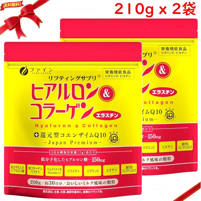 ヒアルロン&コラーゲン 210g x 2袋セット HYALURON COLLAGEN 210g ・サイズ:180×200×80mm(幅×高さ×奥行) ・内容量:210g ・原材料:魚コラーゲンペプチド(中国製造)、練乳パウダー、ハトムギエキス末、エラスチンペプチド、コエンザイムQ10(還元型)、デキストリン/トレハロース、ヒアルロン酸、V.C、香料、甘味料(スクラロース)、ビオチン、(一部に乳成分・ゼラチン・大豆を含む) ・栄養成分(7g当たり):エネルギー 25kcal、たんぱく質 5.50g、脂質 0.08g、炭水化物 0.69g、食塩相当量 0.08g、ビタミンC 100mg、ビチオン 45μg、ヒアルロン酸 150mg、コラーゲン 5250mg、エラスチン 15mg、ハトムギエキス末 450mg ・製造国:日本 ヒアルロン酸やコラーゲンを贅沢配合。サポート成分として、ファイン独自開発のハトムギエキス、エラスチン、還元型コエンザイムQ10、ビタミンC、ビオチンも配合。おいしいミルク風味のさらさら顆粒なので、そのままでもおいしいく、毎日続けられます。1日7gを目安に、コーヒーに、牛乳に、ヨーグルトに、またそのままでもお召し上がりいただけます。 特徴 その他 ●広告文責:彩虹貿易合同会社 070-9243-7340 メーカー名/販売者名:ファイン 原産国:日本 商品区分:サプリメント 6,299円 税込 送料別 カードOK 雑貨通販店ユートピア ![]() | ||