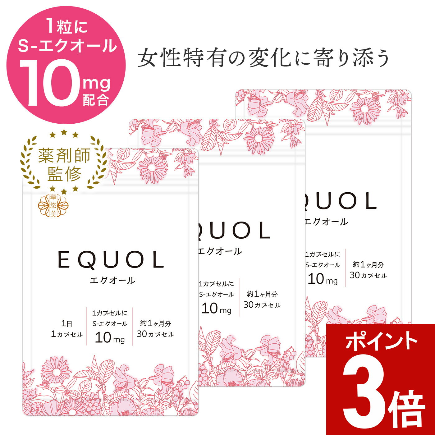 製品仕様 商品名 華悠美 エクオール 商品区分 大豆胚芽抽出発酵物加工食品 商品説明 【華悠美 エクオール 30粒】特長 ◆1日1粒でS-エクオール10mg直接摂取 ◆エクオール原料仕入れ先は、創業100年以上の歴史ある国内大手原料メーカー ◆本製品中のS-エクオール10mg含有は、原料メーカーにて検体分析により確認済 ◆着色料(酸化チタン等)・香料・保存料不使用 ◆余分な成分は排除したシンプルな配合 ◆植物由来カプセルタイプ ◆日本製&GMP認定工場製造 製造国 日... 9,240円 税込 送料込 カードOK レビュー14件 市民薬局 楽天市場店 ![]() | ||