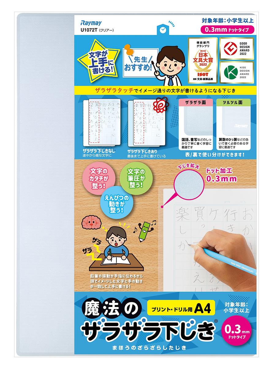スタイル:0.3mmドット◆商品名:レイメイ藤井 下敷き 魔法のザラザラ下じき A4 0.3mmドット クリアー U1072T 透明先生と共同開発。ザラザラタッチでイメージ通りの文字が書ける魔法の下敷。環境に優しい再生PET素材を採用。【カラー】透明【サイズ】A4(幅210mm×高さ300mm×奥行0.55mm)【素材】再生PET樹脂【仕様】表:ザラザラ、裏:ツルツルザラザラ面:0.3mmドット【ザラザラタッチでイメージ通りの文字が書ける】 下じき表面に施した細かいドット加工が、筆記時に、鉛筆の動きが振動となってザラザラと手や指に伝わることで頭の中にイメージした文字と手の動きが一致しやすくなります。 表側のザラザラ面は、国語や書写などのしっかり丁寧に書く学習に最適です。 裏側のツルツル面は、算数のひっ算など、急いで書く必要のある学習に最適です。 プリントや横長変形の漢字・計算ドリルに合ったA4サイズと、授業ノート・漢字練習帳などに合ったB5サイズの2サイズ展開。 環境に優しい再生PET素材を採用。 商品名:レイメイ藤井 下敷き 魔法のザラザラ下じき A4 0.3mmドット クリアー U1072T 966円 税込 送料込 カードOK まんまるふれすた ![]() | ||