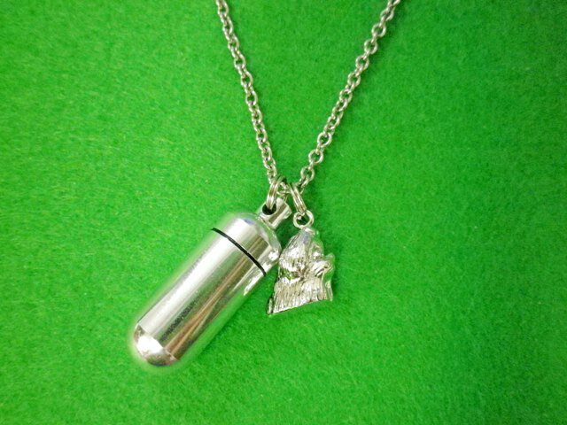 天国であなたの大切な愛犬が寂しくないように、いつもあなたのそばで供養してあげて下さい。 ご不幸にも大切な愛犬が亡くなられた際に、火葬後の遺灰(一部)や歯、毛(火葬前)などを収める特別な遺骨ペンダントです。 ボールチェーンのペンダントは、ジュエリーチェーンの定番でどんなスタイルにも合わせやすいシンプルなデザインになっております。 ペット供養・ペットロスケアに・・・ 累計30,000個以上お買い求め頂き、皆さまの心を癒やし続けています。 ・当社のカプセルは・・・軽くてさびにくく耐久性に優れ航空機や高級車に使われる強度を持ったアルミ素材を使用、ゴムパッキン付で防水性もUP! 又、開口部が広いので、遺骨などをそのまま入れて頂けます。 とてもカプセルに適した素材で、長く安心してお使い頂けます。 色は、「シルバー」・「ゴールド」・「ピンク」・「ブルー」・「クロ」からお選び下さいませ。 ・当社のチェーンは・・・同じような見た目(仕様)の遺骨ペンダントは他社でも多数ございますが、当社はステンレスチェーンを使用しております。【他社はほとんどがメッキチェーン】ステンレスチェーンは、ご使用中のさびや腐食がほとんど無く、金属アレルギーが起こりにくい上質素材です。 ペンダントは汗をかく首回りに着ける物だからこそステンレスチェーンをお勧め致します。しかも、グループ企業がアクセサリー専門社なのでステンレスチェーンでもこの価格でご提供致します。 日本製 携帯ポーチ付 サイズ ・ワンちゃんモチーフ 約 高さ15mm よこ幅10mm 全長20mm ・カプセル 約 たて40mm 直径15mm 材質 ・ワンちゃんモチーフ 真鍮 ロジウムコーティング ・カプセル アルミ ゴムパッキン ・チェーン ステンレス 3,850円 税込 送料別 カードOK ペット仏具 わんにゃんメモリー ![]() | ||