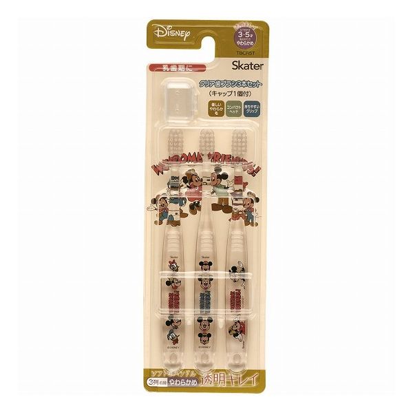 乳歯期に! 3〜5才向けの園児用歯ブラシ3本セット。 買い置きストックに便利です♪ 透明感のあるクリアなボディがかわいくておしゃれ! ・優しいやわらか毛 ・奥まで磨きやすいコンパクトヘッド ・持ちやすいグリップ ・通園、通学に便利なキャップ付き(1個) 【対象】乳歯期(3〜5才) 【サイズ】長さ 約140mm 【毛の硬さ】やわらかめ 【耐熱温度】80度 【柄の材質】PET 【毛の材質】ナイロン ※煮沸や電子レンジ消毒は、しないでください。 ●中国製 ※掲載画像は... 682円 税込 送料別 カードOK スケーター公式ショップ ![]() | ||