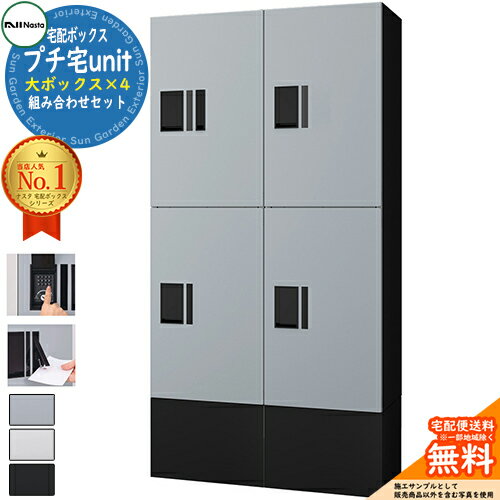 宅配ボックス プチ宅unit 組合せ02 (前入れ前出し・機械式・防水構造:IPX4) 据置型 販売条件 ◆詳しくはこちらをご確認ください サイズ 詳細図をご確認下さい カラ- 本体:・SKシルバー×ブラック ・BKブラック×ブラック ・Wホワイト×ブラック ・SVシルバー×シルバー 幅木:・BKブラック ・SVシルバー 仕様 宅配ボックス(前入れ前出し) プッシュボタン錠 捺印装置付きと捺印無しのセット商品 内訳:宅配ボックス 大サイズ×4 材質 本体:スチールSGCC 幅木:スチール セット内容 ■KS-TL01R02AN-□ プチ宅 捺印付き×1 ■KS-TL01R02A-□ プチ宅 捺印なし×1 ■KS-TL01FH250-△ 幅木×2 ※△□には色記号が入ります。 備考・注意 ※受注生産のためメ-カ-出荷までに実働5~7日程度かかります。 ※現場の床に合わせたカールプラグ等は別途ご用意ください。 ※連結用のネジ、防水用のシール材は含まれます。 ※捺印付仕様には非常解除キーと01~10のボックスナンバーが付属しますが捺印無し仕様には付属しません。 ※イメ-ジ画像はイメ-ジサンプルとして販売内容以外の商品があります。 ※イメ-ジ画像は使用環境により色が違って見える場合があります。 ※施工には、専門的な知識と、道具、技能が必要となります。 ※防水タイプですが完全防水ではありませんので中身が濡れることがあります。 分類 【ナスタ】 【宅配ボックス】 【プチ宅】 【据置き】 【ホワイト】 【ブラック】 【シルバー】【防水】NASTA ナスタ プチ宅 集合住宅用宅配ボックス シリーズ Nastaの集合住宅向け宅配ボックス あらゆる集合住宅に フィットする宅配ボックス 「あると便利」から「あって当たり前」になった 集合住宅向け宅配ボックス。 市場シェアNo.1のNastaが、 どんな規模・デザインにもフィットする 集合住宅向け宅配ボックスの新しい基準をお届けします。 省スペースの小型タイプから大型ロッカータイプまで、 フルラインアップがカバーするNastaの宅配ボックスなら、 物件規模を問わず、幅広い集合住宅に対応できます。 どんな空間にも調和する 4色のラインナップ。 すっきりとしたシンプルなデザインで、 どのエントランスにも調和する宅配ボックス。 Nastaの集合住宅向けポストと組み合わせれば、 より統一感あるエントランスに。 コンパクトで場所を取らないプチ宅シリーズ、 床固定のみで自立するプチ宅ユニットとSTANDARD。 どんなエントランススペースにも設置できます。 サイズ・デザインが統一された、 Nastaの集合住宅用ポストD-ALLとの組み合わせも可能。 プチ宅がコンパクトなので、 既存ポストの下など、限られたスペースにも設置可能。 IPX4防水規格に準拠しているので、 アプローチや軒下のスペースでも雨から荷物を守ります。 ●その他の「一流メーカー宅配ボックス」も多数取り扱っております! ※未掲載商品をお探しの方はお問い合わせください! 【ユニソン】 ヴィコDB・ケイト・コルディア・コルディアラック・フロリア・リピットDB 【LIXIL リクシル】 宅配ボックスKT・宅配ボックスKL・スマート宅配ポストTA型・スマート宅配ポストTB型 【YKKap】 ピタットkeyシステムルシアス 宅配ボックス1型・ルシアス 宅配ポスト1型・ルシアス 宅配ポスト2型・シンプレオシリーズ ポスティモ 宅配ボックス1型 【三協アルミ】 フレムス Light S型・フレムス 【オンリーワン クラブ】 デポ・コロン・ヴェリータエボルタ ネロ・ガレット・マカロン・フォルン・エンティガ・キャス・ヴェリータ NX・ポスト&宅配ボックス カレ・カーメル ブロスII・ラウム・コール・スタッフII・スタッフI 【セキスイ エクステリア】 bobi Cargo(ボビカーゴ)・ドゥオモ・ed-CUBE・ノボックス・S.P.B 【パナソニック Panasonic】 エントランスポール アーキフレーム・コンボ・コンボライト・コンボイント・コンボエフ・コンボメゾン・イーコンボライト・コンボフラット 【Brizebox ブライズボックス】 スタンダード・ラージ・EXラージ 【ナスタ Nasta】 プチ宅・プチ宅・REGULAR・KS-TLT450・KS-TLT240・KS-ATSB002・KS-TLU160・KS-TLT340-FN415・KS-TL01R・KS-TL01RC・KS-TLP28・KS-TLP36・KS-TLT340-F 【KGY工業】 KGY・リシムワイド・THB-276・THB-276DW・THB-3115・THB-382・THB-3DanE・リシムユニットE・One・THB-181・リシム コトン・THB-258N 【ダイケン】 TBX-F1・TBX-F2・TBX-F・TBX-G・TBX-G1・TBX-G2・TBX-D・TBX-BDシリーズ 【神栄ホームクリエイト】 CBX-401・CBX-701・CBX-301・CBX-601・CBX-102・CBX-202・CBX-103 ▼ 当店おすすめ! NASTA ナスタ プチ宅 集合住宅用宅配ボックス シリーズ紹介 当店の人気商品Pick Up! 259,000円 税込 送料込 カードOK サンガーデンエクステリア ![]() | ||
