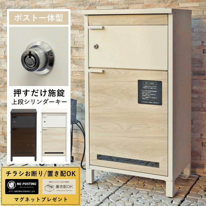 ポスト一体型宅配ボックスの解説 郵便物、宅配物どちらも不在時に、荷物を受け取れるポスト付き宅配ボックス。忙しいあなたや、配達の方にも優しい商品です。上段はシリンダーキーで防犯性が高いです。下段は押すだけで施錠できるプッシュ錠で防犯性が高いです。高級感のある郵便受けが個性ある玄関を演出する宅配BOXです。上段の郵便投函口は、ゆうパケットポストやレターパックライトが投函可能です。 【上段宅配BOX使用可能】 印鑑ケースは2個付属しており、上段の鍵もプ... 23,910円 税込 送料込 カードOK レビュー9件 AZmax Direct ![]() | ||