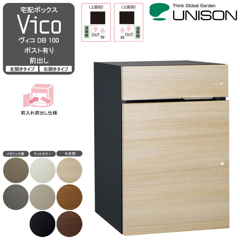 メーカー希望小売価格はメーカーカタログに基づいて掲載しています 商品SPEC ■ Vico ヴィコ DB 100 ポスト有り 前出し 【カタログサイズ】 閉時/幅392 × 高さ590 × 奥行458mm 開時/幅402 × 高さ604 × 奥行き810mm 郵便投入口/幅321 × 高さ26mm 【重量】 17.0kg 【材質】 [本体] 高耐食溶融めっき鋼板 [郵便投函・取出蓋] アルミ(木目調:木目シート仕上げ、マットカラー:カラーシート仕上げ、メタリック調:メタリック調シート仕上げ) [宅配投函・取出扉(外扉)] ステンレス(木目調:木目シート仕上げ、マットカラー:カラーシート仕上げ、メタリック調:メタリック調シート仕上げ) 【付属品】 専用受領印 ※右開きタイプは受注後生産品となります。お届けまでお時間を頂きますので予めご注意ください。 ご購入前に必ずご確認ください。 【製品について】 ・ポスト以外の用途で使用しないで下さい。 ・ポストの上に乗ったり、ぶら下がったりしないで下さい。 ・投函口蓋、取出口蓋の開閉の際に手を挟まないよう、ご注意下さい。 製品の切断面は、安全に配慮し処理を施しておりますが、怪我をする場合がございますので、十分ご注意下さい。 ・本製品は、防雨型となっていますが、完全防水ではございません。 激しい風雨の場合は、お早めに郵便物を取りだして下さい。 ・防犯上、施錠は必ず行って下さい。 ・ヴィコDB専用オプションは別売りです。 【注意点】 ・ポスト表面の保護をする際は、文字シールや塗装面に直接養生テープなどを貼らないでください。剥がれなどの不具合が発生する恐れがあります。 ・雨により本体上面に水がたまります。ご使用の際は濡れないよう、ご注意ください。 ・ブロックへの埋込の際は、あらかじめ開口部を設けてブロックを施工した後に、ポストを埋め込んで施工してください。施工時にブロックなどの荷重が加わると、雨水が侵入するなどの不具合が発生する恐れがあります。 ・住宅の壁面には埋め込まないでください。 ・壁付け施工はできません。 【取付上のご注意】 ・必ず取付・取扱説明書に従って下さい。 ・取付作業は、施工業者等の専門家にお任せすることをお勧めします。 お客様自身で取り付けを行われる場合は、2人以上での作業をお勧めします。 ・お客様が取付中に破損された商品につきましては、お取り替え等は出来かねますので、ご了承下さい。 ・不安定な場所には設置しないで下さい。 ・取り付け中にポストの投函口蓋、取出口蓋で手を挟まないように、ご注意ください。 【お支払い方法について】 ・メーカー直送品のため、代金引換を承っておりません。 ・銀行振込でのお申し込みの場合、ご入金確認後のメーカー手配となります。その間のお取り置きを承る事が難しく、常に在庫変動がございますので、ご入金後在庫切れとなる場合もございます。 ・クレジットカード決済をご選択いただくと、最短でのお手配が可能です。 【納期・在庫について】 ・ご注文(ご入金)をいただいてからメーカーへ在庫確認を行い、在庫確保の上発送手配致します。当店より、お届け日をご連絡差し上げた段階で、正式にご注文が確定致します。納期は1〜2営業日以内に、メールにてお知らせします。 ・メーカーに在庫がある場合は、通常6営業日以内(右開きタイプは10営業日)の出荷が可能ですが、稀に長期欠品などで、数週間から数ヶ月かかる場合もございます。お急ぎの場合は、ご注文前に在庫状況をお問い合わせ下さい。また、お時間をいただく場合は、個別にご連絡を差し上げます。 ・ページ情報につきまして、最新の情報をご案内する様心がけておりますが、稀に、生産終了・販売中止等の理由にて、商品をご用意出来ない場合がございます。 【他商品との同梱について】 ・同一メーカー製品以外の商品と同梱することが出来ません。 ・納品書・領収書をご希望のお客様は、郵送にてお送り致します。 【商品のお届けについて】 ・メーカーの委託する運送会社での発送となります。運送会社のご指定・配達時間の指定は承れません。 ・メーカー休業日(土曜日・日曜日・祝日・メーカー指定日)のお届けは、行っておりません。 着日指定をご希望をいただきましても、ご対応出来かねますので、ご了承下さい。 【返品・交換・注文内容変更等について】 ・品質特性上、不良品以外のご返品・交換を承る事が出来ません。 ・受注、発送の手続きの都合上、注文内容の変更は出来かねますのでご注文を確定する前に、必ず内容のご確認をお願い致します。 【商品お受け取り後について】 ・稀に部材が不足または破損している場合がございますので、必ず施工前に中身の確認をして下さい。 ・配送事故対応のため、商品が到着いたしましたら、すぐに開梱して中身をご確認下さい。 ・万一、破損・汚損の際は、必ず到着より一週間以内にご連絡下さい。また、万一の際、在庫状況により交換品がすぐにご用意出来ない場合がございます。交換品のお届けまでお時間を頂くことがござ