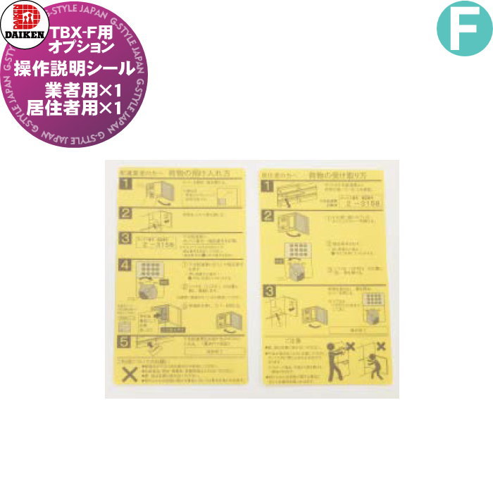 商 品 詳 細商品名オプション【操作説明シール】言語・JS日本語 ・US英語 ・KS韓国語 ・CS中国語 ※日本語はTBX-F本体に標準付属していますので、必要がある場合のみお求めください。セット内容業者用×1、居住者用×1 ※シールは透明シート、グレー文字です。備考※メーカー直送の為代引き支払いできません。 ※代引き支払いのご注文は自動キャンセルをさせて頂きます。 ※沖縄県・離島は配送出来ません ※配送時間のご指定は出来ません ※日曜・祝日の配送は出来ません注意事項※イメージ画像は使用するブラウザ・モニターにより色が違って見える場合があります。施工について※施工はお客様にて責任を持ってご手配ください。 ※施工には、専門的な知識と、工具、技術が必要となります。 ※お近くの施工業者様に設置を依頼して頂くようお願い致します。 ※お近くの施工業者様に相談の上、設置を依頼して頂くようお願い致します。 4,970円 税込 送料込 カードOK DIY・エクステリアG-STYLE ![]() | ||