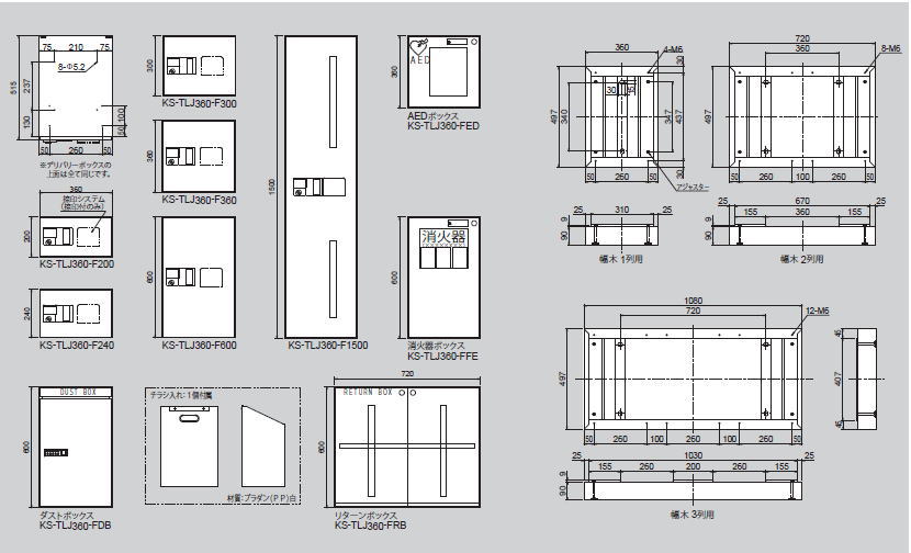 Panasonic パナソニック 集合住宅用宅配ボックス コンボメゾン CTNR4620R(L) 専有6錠 ミドルタイプ 全4色 複数の入居者が共有で使える。アパート対応の屋外用宅配ボックス。 ・電気工事が不要 電気を使わないので取り付け時の配線工事が不要で、電気代など ランニングコストもかかりません。 ・後付設置可能な壁掛け型 壁掛けのねじ取り付けだから、後付け設置が可能です。 既築アパートにも簡単に取り付けができます。 ・キーレスで鍵の管理が不要 プッシュボタン錠を採用。キーレスのため鍵の管理が不要です。 さらに、暗証番号の設定変更が可能なため、入居者が変わるごとに行っていた鍵交換も不要です。 ・カラーは4色 彩度、艶を抑えた建築素材由来の4色。 流行に左右されず、選びやすいカラーです。 ・コンボメゾンにミドルタイプが新登場! 幅390mm、奥行がたっぷり450mmのスペース設計。 雨水が内部に漏れにくい構造なので屋根のない場所でも設置が可能です。 ・荷物の有無を色でお知らせ 荷物の受け取り状態と宛先の部屋番号が色でわかりやすく表示します。 ・レバー操作のみで簡単施錠 扉の内側にあるレバー操作のみで施錠が完了。該当の部屋番号にレバーを合わせて セットするだけの簡単施錠です。 ・押印は1回のみでイタズラ防止 伝票差込口に伝票を入れ「なつ印」ボタンを押すだけ。 1納品につき1回の押印でイタズラ防止の押印回数制限機構付きです。 荷物の取り出し(入居者様向け) ミドルタイプ 電源 不要 使用環境 周囲温度:-5℃〜40℃ 材質 ZAM(高耐食溶解めっき鋼板t0.8) 本体サイズ 前出し: 幅390×奥行450×高さ590(mm) 受け取り可能サイズ 340×350×500(mm) 質量(重量) 1錠:14.3kg 4錠:14.9kg 6錠:15.2kg 8錠:15.5kg 品番 CTNR4620RTB / CTNR4620LTB CTNR4620RSC / CTNR4620LSC CTNR4620RWS / CTNR4620LWS CTNR4620RMA / CTNR4620LMA 70,950円 税込 送料込 カードOK 総合問屋 萬屋 ![]() | ||