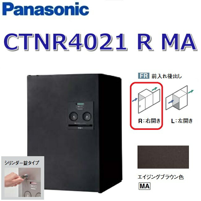 ※写真はメーカーカタログ掲載の代表写真を利用しております。 本商品の写真とは限りません。 パナソニック CTNR4021 R MA/CTNR4021RMA 【FR 前入れ後出し】【R 右開き】【MA エイジングブラウン】コンボ 宅配ボックス スタンダード シリンダー錠 【商品の仕様・機能 等について】 パナソニック 住宅設備・建材 お客様ご相談窓口 フリーダイヤル: 0120-878-093 携帯電話からは:06-6780-5779 ●受付時間:365日/9:00〜18:00 62,500円 税込 送料込 カードOK 住設建材カナモンジャー ![]() | ||
