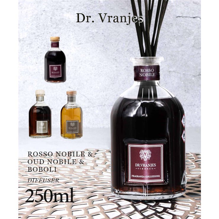 販売価格は予告なく変更される場合がございます。あらかじめご了承ください。■DR. VRANJES(ドットール・ヴラニエス)■1983年にイタリア・フィレンツェでスタートした自然派フレグランス/コスメティックブランド・ドットール ヴラニエス。世界中に熱烈なファンを持つ、赤ワインをモチーフにしたロッソ ノービレをはじめ、ルームフレグランスとして革新的と言えるたくさんの香りを生み出し続けています。■ディフューザー リフィル■ルームフレグランス・ディフューザーの専用リフィル。最高品質のエッセンシャルオイルを使用したフレグランスは、記憶をめぐる香りの旅というクリエイションのテーマのもと、伝統と革新を併せ持った手法で開発されています。お手持ちのディフューザー用ガラスボトルに詰め替えてご使用いただけます。250ml用(10本)もしくは500ml用(12本)のスティックをご用意しております。お手持ちのディフューザーボトルの大きさにあわせてお選びください。※スティックの在庫状況により、お選びいただくことができない場合がございます。あらかじめご了承ください。■フレーバー■・ACQUA/水バジルの葉の芳しい香りに、ホワイトムスクとソルトが個性を際立たせる爽やかなマリンノートが特徴です。浜辺に寄せる波のような透明感あふれるフレグランスです。・AMBRA/アンバーアンバー独特の優美で洗練された香りが際立つオリエンタルノートです。・ARANCIO CANNELLA/オレンジ・シナモン地中海のみずみずしいオレンジとセイロン島産シナモンのブレンドが、洗練された印象を与えるフレグランスです。明るくエナジーあふれる香りです。・ARIA/空気レモンとオレンジの花の香りに、ホワイトムスク、ミントが見事に調和したシトラスノートが特徴です。空気のようにさりげなく、フレッシュで清潔感のあるフレグランスです。・CHINOTTO PEPE/キノット・ペペビビッドなペッパーが美しく調和した、キノットのフレッシュでほのかにビターなシトラスノートが特徴です。鮮やかでエレガントなフレグランスです。・GINGER & LIME/ジンジャーライムほのかに甘く情熱的なジンジャーを爽やかなライムのエッセンスが引き立て、洗練された印象を与えるスパークリングノートが特徴です。・GREEN FLOWERS/グリーンフラワーグリーンティーとイランイラン、ジャスミンなどの芳しい花々のエッセンスがみずみずしく調和した、ナチュラルなグリーンノートが特徴です。・ITALIA/イタリア世界遺産のアマルフィやサルディーニャなどイタリアの美し い海を思わせるきらめくアクアグリーンが特徴です。イタリアの3色旗からインスパイアされたワイルドミント(緑)、ベルガモット(白)、ジンジャー(赤)が織り成す香りは、フレッシュで芳しく、清々しさとともに波打ち寄せる海辺を歩くときのような解放感と深いリラックス感をもたらします。・PEONIA BLACK JASMINE/ペオニア ブラック ジャスミンヒヤシンスやオレンジブロッサム、スズランの澄んだ印象のトップノートに、ベースとなるブラックジャスミン、香り高いシャクヤク、シクラメンが洗練されたハーモニーを生む、スパークリングフローラルノートが特徴です。・PETALI DI ROSE/ペタリ ディ ローゼ抱えきれないほどたくさんのバラの花束を思い起こさせる、まろやかでいて華やかなフローラルノートが特徴です。貴重なターキッシュローズのエッセンスがキーとなっているフレグランス。・ARANCIO UVA ROSSA/オレンジ&グレープオレンジと赤ぶどうのビターでリッチなフルーティアロマに、ほのかなシナモンがアクセントとなっています。自然の恵みをとじこめた甘くみずみずしいフレグランスです。・MELOGRANO/ザクロ赤く瑞々しいザクロの種を砕いた時に広がる、フレッシュでリッチな甘さを香りで表現した優しくエレガントなフルーティノートが特徴です。■使用方法■ボトルのコルクを取り外し、付属している全てのスティックをボトルに挿してください。使い始めは、フレグランスをスティックにしっかり吸収させるために、ボトルにスティックを挿してから30分程そのままにしてください。その後、スティックの上下を入れ替えると香りが広がりやすくなります。使用中は、お好みに応じてスティックの上下を入れ替え、香りの強さや広がりを調節してください。※スティックの本数を減らして使用すると、ボトルに埃が入りやすくなったり、フレグランスの蒸発が早まるため、お勧めできません。■開栓方法■小さなお子様による誤飲事故を防止するために、二重構造のチャイルドロック式キャップとなっております。キャップの上から下へ垂直方向に押しながらキャップを回すことで、内蓋のツメの部分と外蓋の溝の部分がかみ合い内蓋を回転させ開栓できる仕組みです。キャップを真上から下へ垂直にしっかりと押し、内蓋と外蓋がかみ合った状態のまま、キャップを反時計回りに押しまわします。掌全体でしっかりとキャップを包み込みながら上から下方向へ押しまわすと