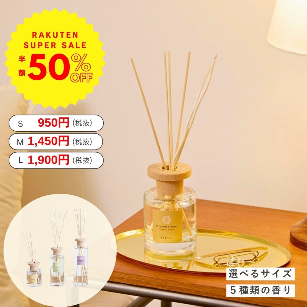 shesay インテリアに馴染む ディフューザー 5種の香り 120ml 300ml 430ml 天然 木 WOOD 枝 ガラス 瓶 ボトル ルームフレグランス アロマ 香り フレグランス インテリア ナチュラル ギフト パッケージ付き 新生活 プレゼント ギフト 母の日 シンプル モダン newlife-zakka\ スタイリッシュなボトルデザイン / どんな暮らしにも馴染み、ほのかに感じる癒やしの香りを届けてくれるリードディフューザーです。 気取らない自然な暮らしの空間に溶け込むボトルデザイン。 透明感のあるガラス製のボトルに、木製のキャップカバーをつけることで洗練された印象を与えるラグジュアリーなデザインに仕上げています。 そのおしゃれなボトルは、お部屋のインテリアアクセントとしても活用していただけます。 シンプルながら長めに仕上げたリードには天然枝も加わり、やさしく穏やかな香りをお部屋いっぱいに届けてくれます。 8種類の香りと3サイズをご用意しましたので、芳香期間に応じてお好みのサイズや香りをお選び頂けます。 また、しっかりとした筒型のBOXに入っているので、ギフトにもピッタリです。 *中フタの開封に便利なマルチオープナーはコチラ インテリアに馴染む フレグランス ディフューザー 生産地 中国 サイズ Sサイズ:底部直径6.5cm×高さ10.5cm(容量120ml) ラタンスティック4本・ウィロースティック2本 ※長さ24cm Mサイズ:底部直径6.5cm×高さ17cm(容量300ml) ラタンスティック4本・ウィロースティック2本 ※長さ34cm Lサイズ:底部直径6.5cm×高さ21cm(容量430ml) ラタンスティック4本・ウィロースティック2本 ※長さ45cm 素材 フレグランスオイル・ガラス・ウッド 付属スティック:ラタン・ウィロー その他 Sサイズ持続期間:約1~2ヶ月 Mサイズ持続期間:約2~3ヶ月 Lサイズ持続期間:約3~4ヶ月 注意事項 ●ディフューザーは、付属スティックの本数で香りの強さを調節できます。●中に入っているフレグランスオイルはプラスチックを傷めたり、家具やフローリングの塗装面を剥がす可能性がありますので、設置場所には十分ご注意ください。●オイルは製品の特性上、製造時期等により液体の色味が無色透明ではない場合や、時間が経つにつれて変色する恐れがありますが品質には問題ありません。●開封後は高温多湿、直射日光を避けて置いてください。●モニターの発色具合によって実際のものと色が異なる場合があります。 ●商品は手作りにつき多少の個体差がありますので予めご了承ください。●割れ物などを中心に、アイテムによっては検品の為に箱や資材を開封させて頂きます。テープの剥がし跡や開封した痕跡が残っている場合がございますが、予めご了承ください。 - ATTENTION- *中フタの開封に便利なマルチオープナーはコチラ 1,045円 税込 送料別 カードOK レビュー17件 shesay ![]() | ||