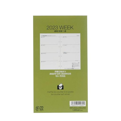 2022年12月~2024年3月 本文サイズ:95Wx170Hmm 160ページ カレンダー2年分、年計画:見開き6か月2年分、月計画:見開き1か月、週計画:見開き1週、1色印刷 日本製 1,984円 税込 送料別 カードOK ハピナイス 楽天市場店 ![]() | ||