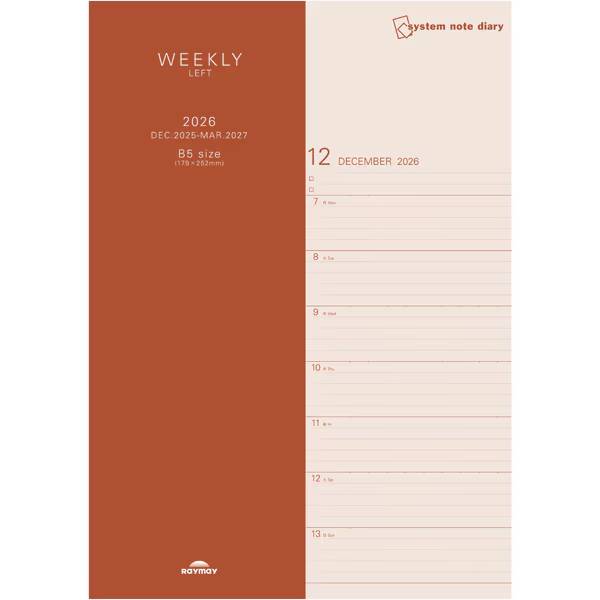 商品説明 自分仕様でカスタマイズできるシンプルなノートダイアリー。 ドット罫線入りで文字が書きやすい。 たくさんのスケジュール記入にも◎。 ウィークリー・レフト。 1週間のスケジュールを把握しつつ、メモが出来るビジネス・プライベートあらゆる用途に使える万能フォーマット。 右側のフリースペースは自由度が高く、文章や作図等どんな使い方にも対応できる。 商品仕様 規格 ウィークリー・レフト サイズ W179×H252×D8mm 本体重量 279g 日付期間 2025年1... 1,118円 税込 送料別 カードOK ぶんぐたうん ![]() | ||
