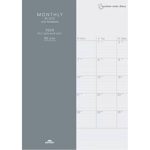 商品説明 自分仕様でカスタマイズできるシンプルなノートダイアリー。 ドット罫線入りで文字が書きやすい。 たくさんのスケジュール記入にも◎。 マンスリー・ブロック・ノート。 たっぷりのノート付でダイアリーとノートを一冊にまとめられる。 商品仕様 規格 マンスリー・ブロック・ノート サイズ W179×H252×D6mm 本体重量 227g 日付期間 2025年12月〜2027年3月... 957円 税込 送料別 カードOK ぶんぐる ![]() | ||