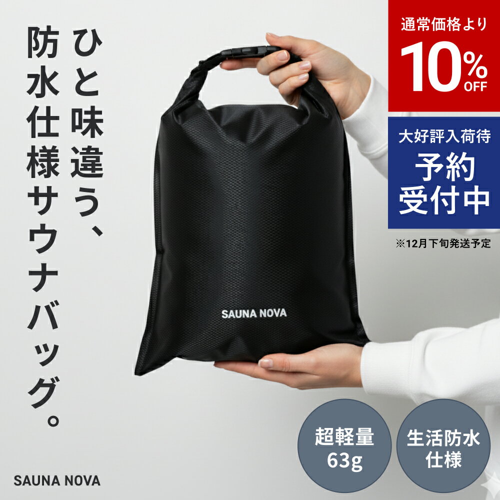 商品詳細 特徴 ・【防水性】防水加工ポリエステル素材が水滴や湿気をしっかりガード。濡れたアイテムも安心収納。 ・【軽量&柔軟】さらに軽く柔らかく進化。折りたためるパッカブル仕様で持ち運びもスマート。 ・【簡単密閉】開口部をくるくる巻いてバックルで留めるだけ。簡単&確実に密閉。 ・【収納力】横約23.5cm × 縦約35cmの大容量。500mlペットボトル約3本分を収納可能。 ・【マルチユース】サウナはもちろん、温泉・ジム・キャンプなど幅広いシーンで活躍。 カラー ・ブラック サイズ 横約23.5cm × 縦約35cm 素材 【生活防水】 ポリエステル、PVC防水加工 生産国 中国 注意事項 ※ご使用毎に水漏れがするような破損がないか必ずご確認ください。 ※水が入り込まないように開口部が2〜3回折り込まれ、しっかりと閉まっているか確認してご使用ください。 ※本品は完全防水ではありません。長時間水をかけたり、短時間でも水中に沈めたりしないでください。\ 一緒に選ばれている人気アイテム / 3,132円 税込 送料込 カードOK SAUNA NOVA ![]() | ||