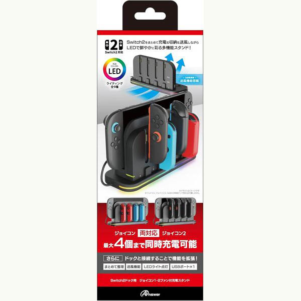 ■メール便商品をご購入の方で、下記の項目を要望される場合は、配送事故補償オプションをご購入ください。・弊社出荷からお届けまでの日数を短縮されたい方(2024年5月以降)・対面で荷物を受け取りたい方・配送事故による補償を、希望される方【配送について】●宅配便にて発送いたします。(対面での受け取りとなります)※発送方法は、弊社指定になります。お客様の希望による変更はお受けできませんので予めご了承ください。商品説明商品名Switch2 Answer ドック用 ジョイコン1・2ファン付充電スタンド発売日202509下旬JANCD4573201423023在庫について共有在庫のため注文のタイミングにより、ご要望に添えない場合がございます。受注後に在庫確認を致します。在庫の可否については、当日〜3営業日にご連絡を致します。注意書き画像に特典が載っている場合でも、商品名に特典表記がない場合はつきませんのでご了承ください。画像はイメージです。実際の商品は商品名に準ずるものとなります。メーカー都合により、パッケージや仕様が変更になる場合がございます。モニターの発色具合によって、実際の商品と色が異なる場合がございますので予めご了承ください。【商品情報】ジョイコンおよびジョイコン2の両方に対応した充電スタンド! 送風ファン・RGB点灯・USBポートを搭載した多機能スタンド!●Switch/Switch2のジョイコン 両対応! ジョイコン/ジョイコン2の形状にフィット! どちらのジョイコンもしっかりと充電できます。 ●3段階の送風ファン搭載! 3段階の送風ファンを搭載しており、Switch2の温度上昇を抑えます。 ●9種のRGB点灯やUSBポートなどの機能も搭載! 9種類のRGB点灯(消灯も可能)やUSBポートも1ポート搭載しており コントローラーの有線通信などにお使いいただけます。 ●カンタン設置! 本製品を組み立て上からSwitch2ドックを設置するだけで簡単にセッティングできます。 ●バスパワータイプ! Switch2ドックのUSBポートから給電するバスパワータイプ! 4,500円 税込 送料込 カードOK ゲームアーク 楽天市場店 ![]() | ||